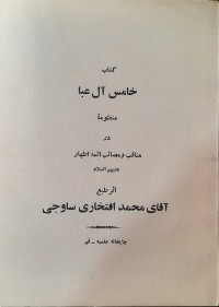 عنوان روی جلد... خامس آل عبا: منظومه در مناقب و مصائب ائمه اطهار علیهم‌السلام