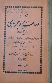 کلیات صامت بروجردی : چاپ گرواری شامل بحرطویل مدایح غزلیات حکایات مصائب مراثی نصایح